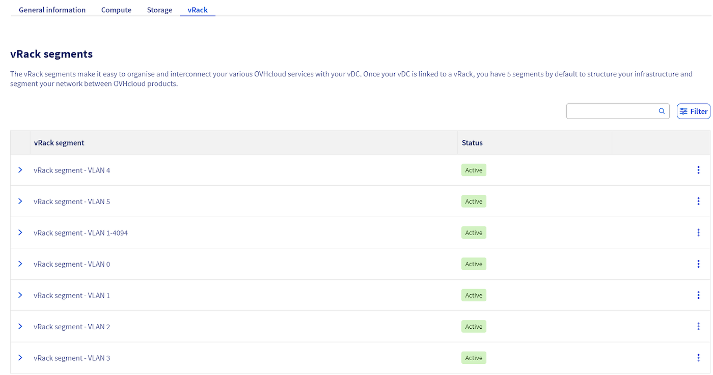 Locate the vRack segment named vRack segment - VLAN0 or vRack segment - PUBLIC.
