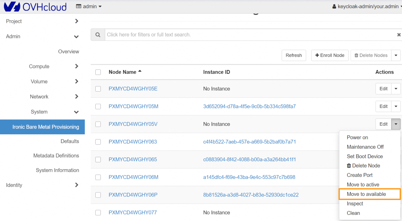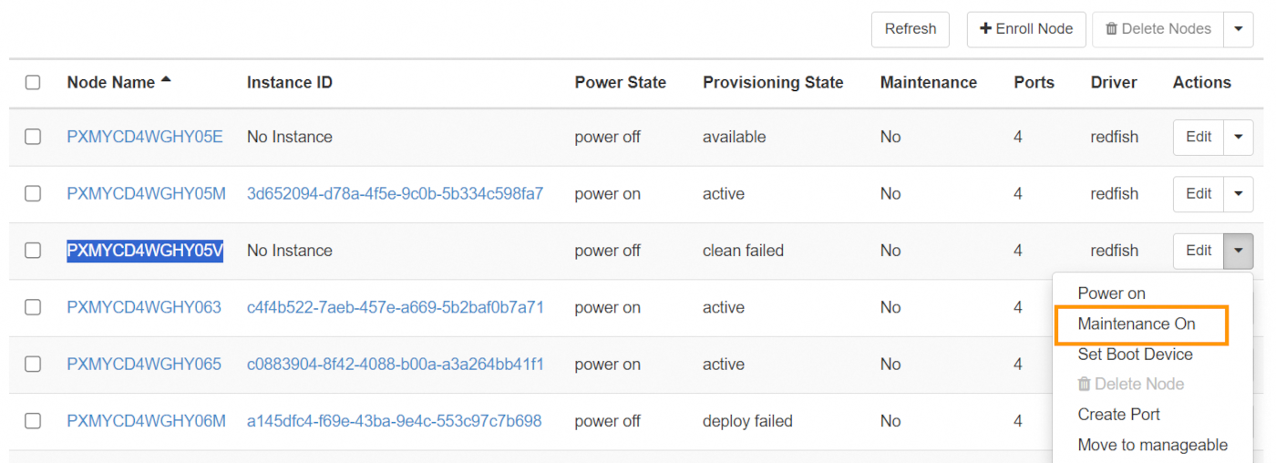 Once the node is in the Enroll state, you can change its state so that it is managed by Ironic.