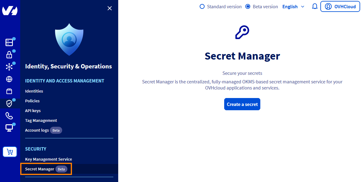 The objective of this guide is to present the use of the Secret Manager through the OVHcloud Control Panel.