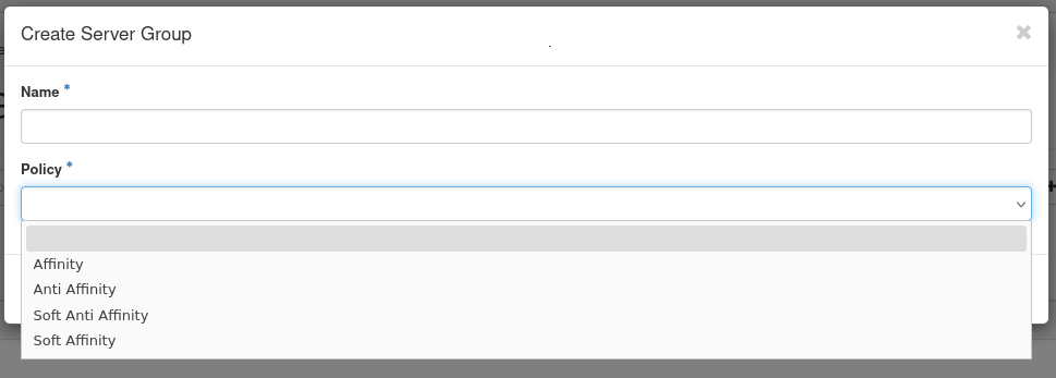 A Server Group can have one of four different policies: Affinity, Soft Affinity, Anti Affinity or Soft Anti Affinity.