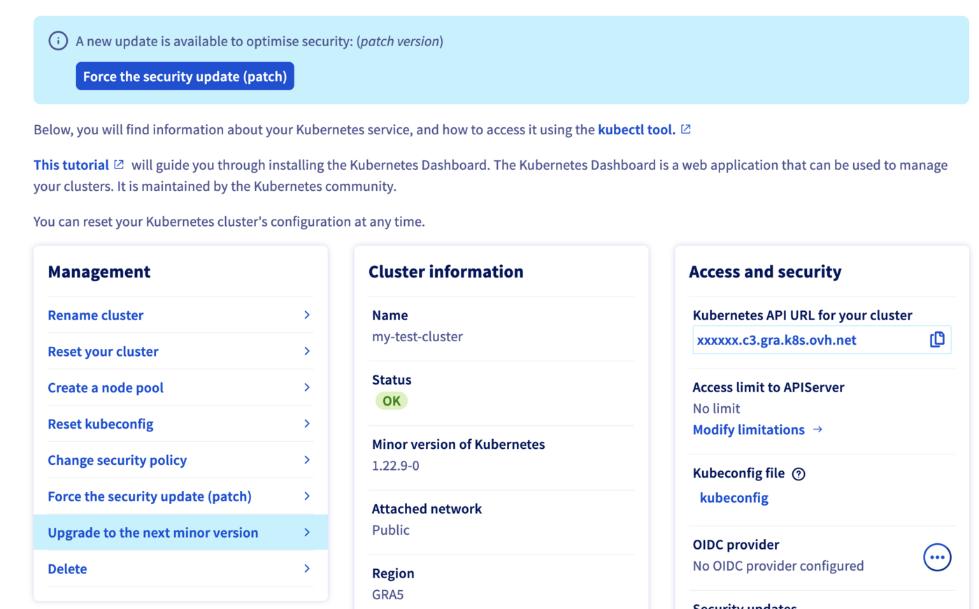 Upgrading Kubernetes version on an OVHcloud Managed Kubernetes cluster