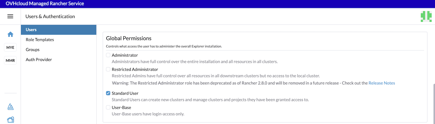 Managed Rancher Service by OVHcloud provides a powerful platform for orchestrating Kubernetes clusters seamlessly. This guide will explain how to manage users and projects on your OVHcloud Managed Rancher Service.