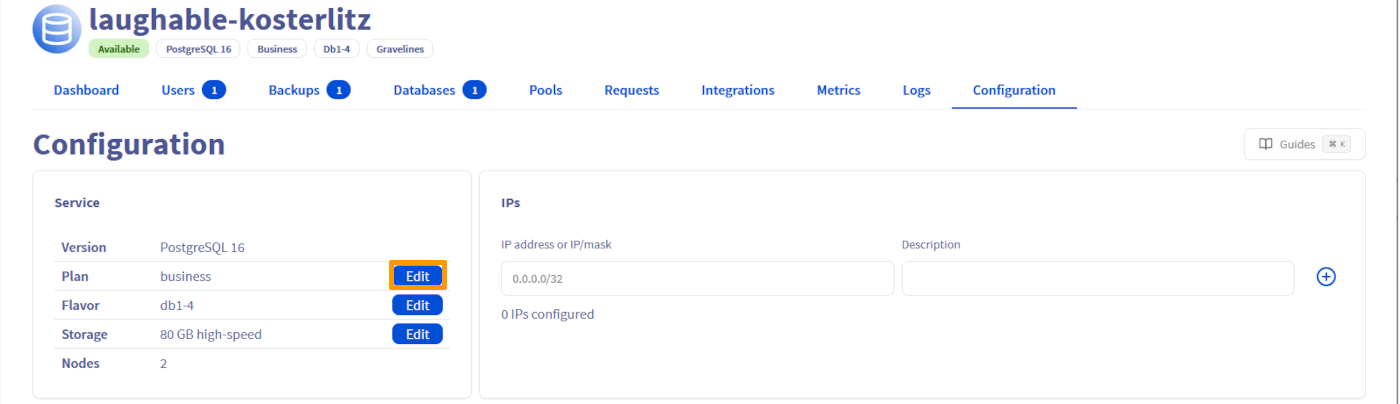 Update the plan of Public Cloud Databases