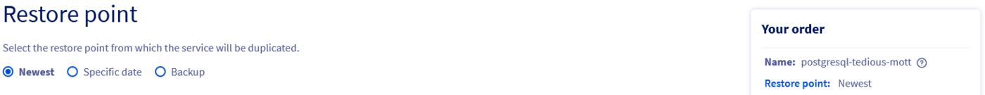 You have to choose a restore point from which the service will be duplicated.