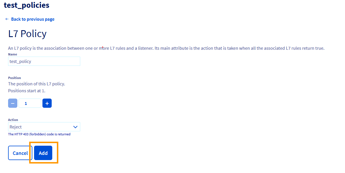 After filling in all the necessary fields, click on Add to create your L7 policy.