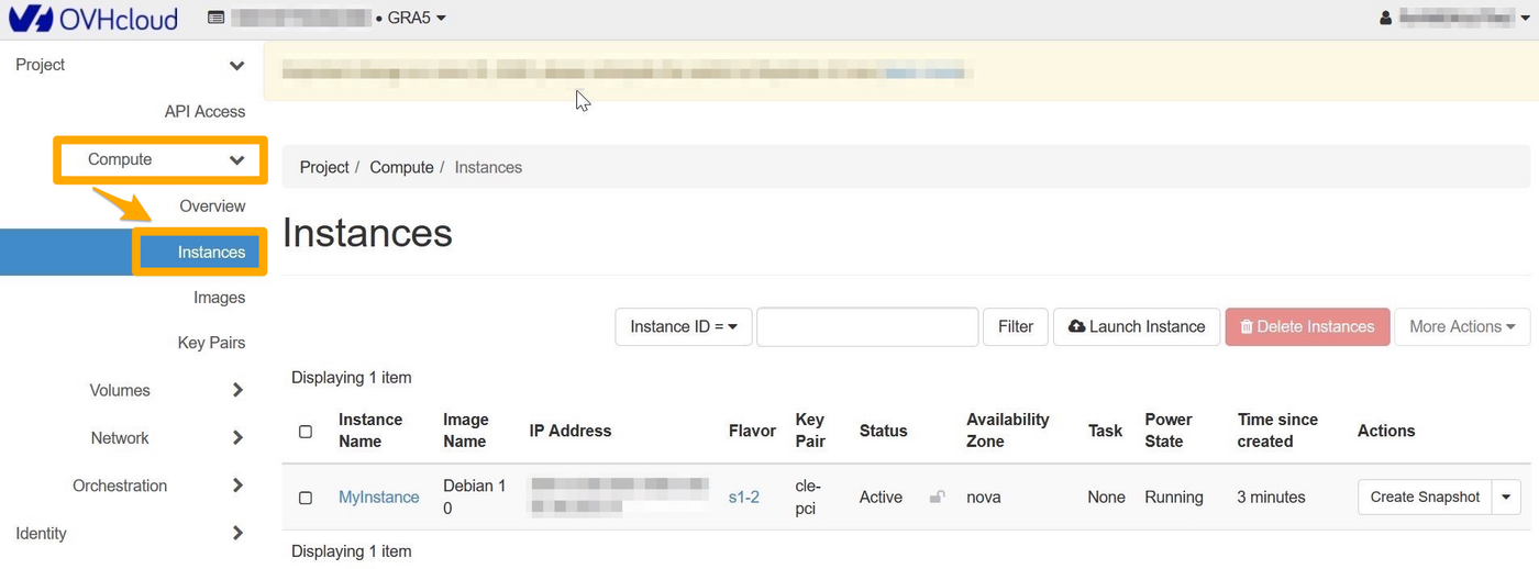 Wählen Sie Compute und dann Instances aus dem Menü.