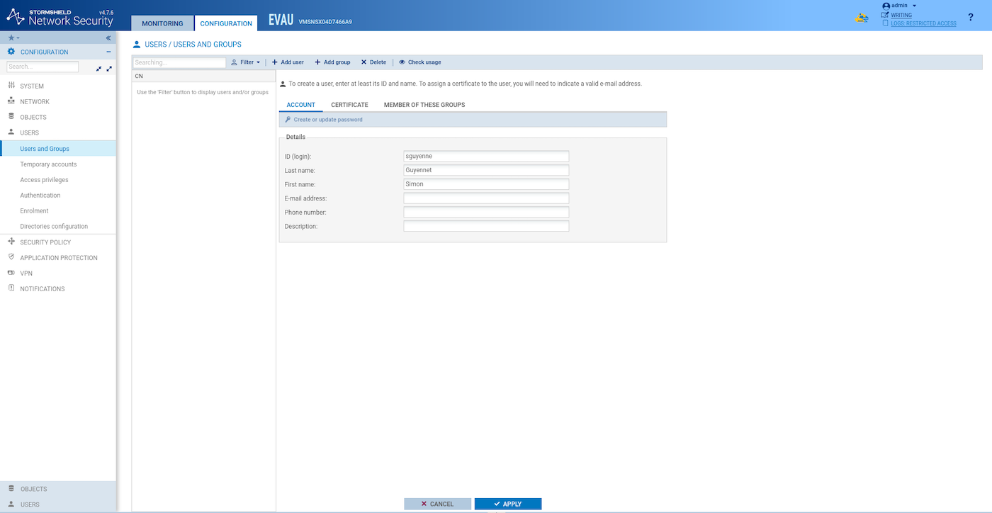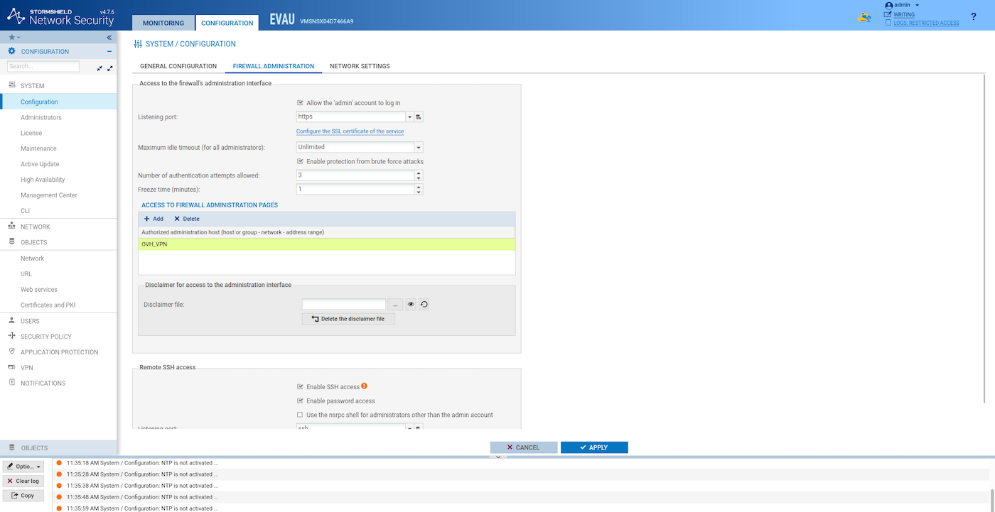 In diesem Beispiel verwenden wir die Befehlszeilenlösung über SSH. Wenn Sie die GUI zur Synchronisierung bevorzugen, finden Sie in der Stormshield SNS EVA-Dokumentation ausführliche Schritte.