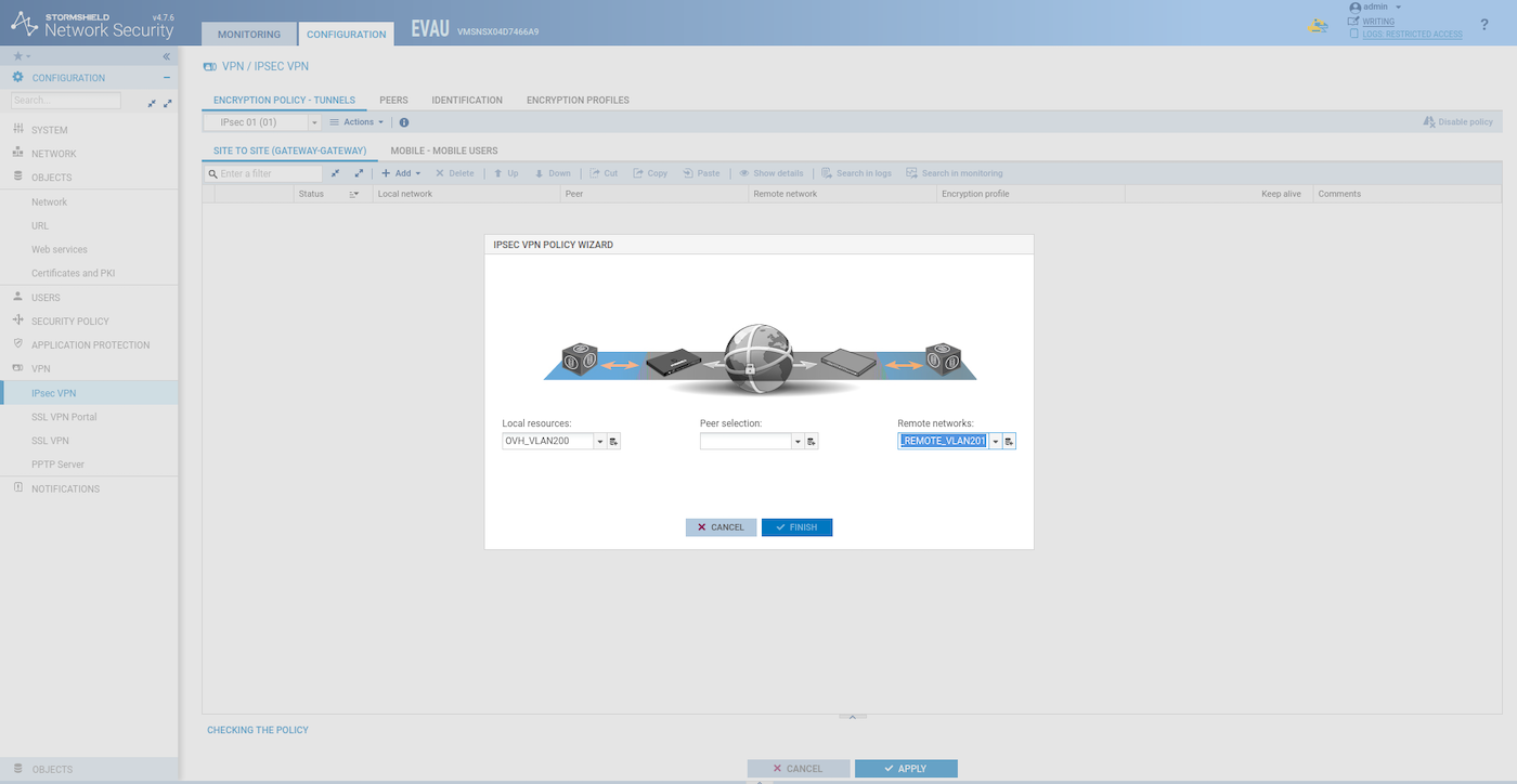 Gehen Sie genauso vor wie beim ersten Standort, aber verwenden Sie VLAN200 für das private Remote-Netzwerk und die entsprechende IP-Adresse für OVH_REMOTE_FW.