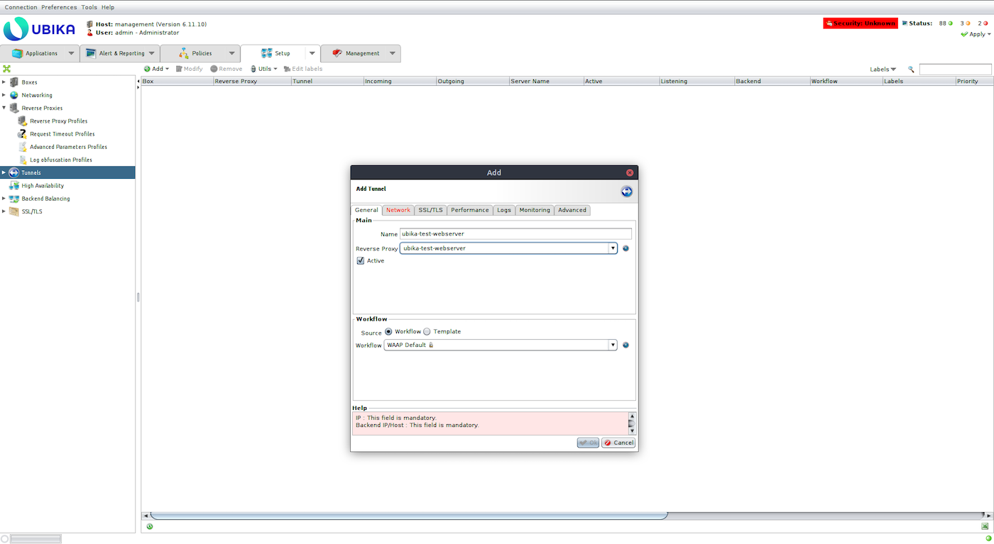 Erstellen Sie einen Reverse Proxy (Setup -> Reverse Proxy -> Add) auf einem der von Ubika verwalteten Boxen:
