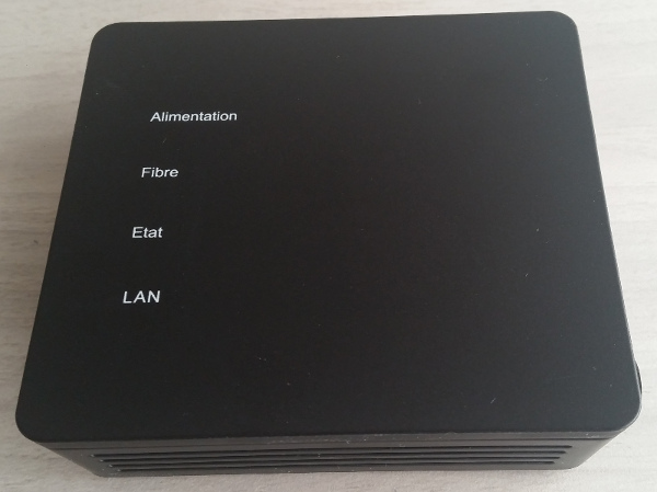 Aucun voyant n'est allumé sur l'ONT : assurez-vous que le bouton-poussoir « ON/OFF », situé sur une tranche de l'appareil est bien enclenché sur ON. Vérifiez que le câble d'alimentation est correctement branché à ses deux extrémités. Testez éventuellement une autre prise électrique. Si le défaut persiste, prenez contact avec notre équipe support.