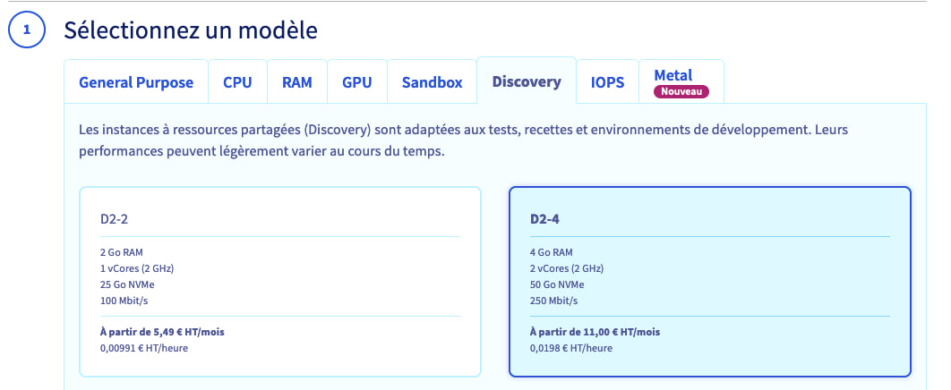 • Example with a D2-4 flavor, Debian 10 and hourly billing: