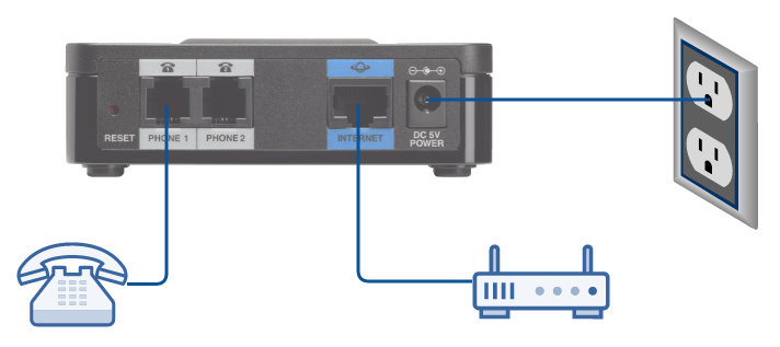 L'emplacement des deux prises Phone peut être trompeur. Le port N°1, qui doit être utilisé dans la majorité des cas, est situé à l'extérieur de l'adaptateur (à gauche lorsque l'on regarde l'arrière de l'adaptateur).