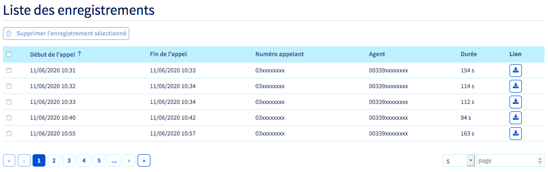 Vous trouverez plus bas la liste des enregistrements que vous pourrez télécharger.