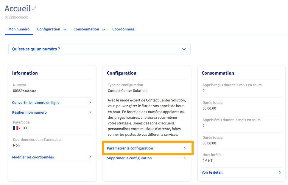 Si une autre configuration est déjà appliquée sur votre numéro, cliquez sur Configuration puis Changer de configuration.