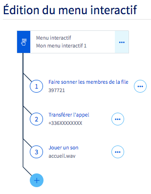 Selon vos besoins, répétez ces manipulations si vous voulez créer plusieurs menus interactifs. Vous pouvez également les imbriquer en tant que sous-menus d'un menu interactif principal, si vous souhaitez par exemple proposer plusieurs choix successifs à vos appelants.