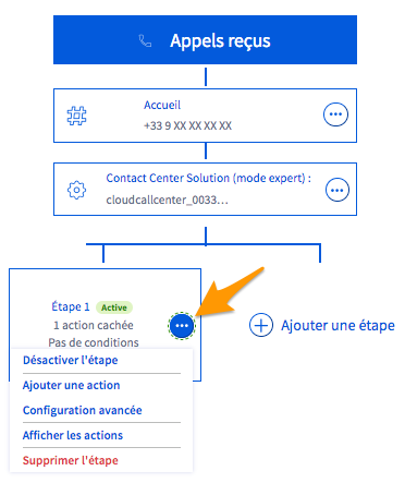 Chaque appel entrant va suivre une ou plusieurs étapes successives que vous allez définir. Au sein de chaque étape, une ou plusieurs actions devront également être créés.