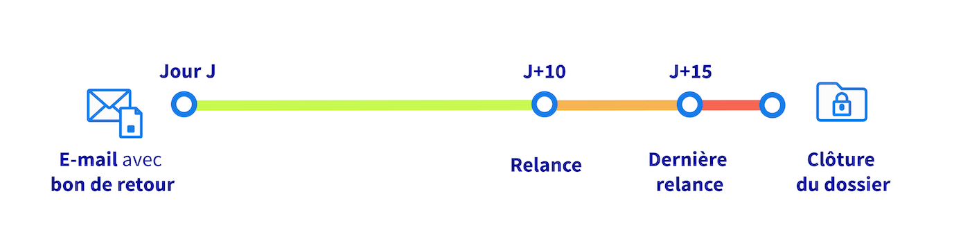 Suite à la réception de l'e-mail contenant le bon de retour, vous disposez de 15 jours pour effectuer l'envoi du matériel, avant la clôture du dossier.
