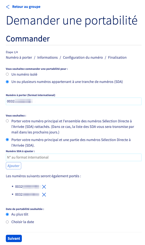 Comme son nom l'indique, il s'agit d'une tranche de plusieurs numéros. La totalité des numéros de la tranche doit être portée, la portabilité partielle étant impossible. Un mandat de portabilité est nécessaire pour effectuer la demande. Celui-ci vous sera transmis par OVHcloud durant les étapes du processus de portabilité.