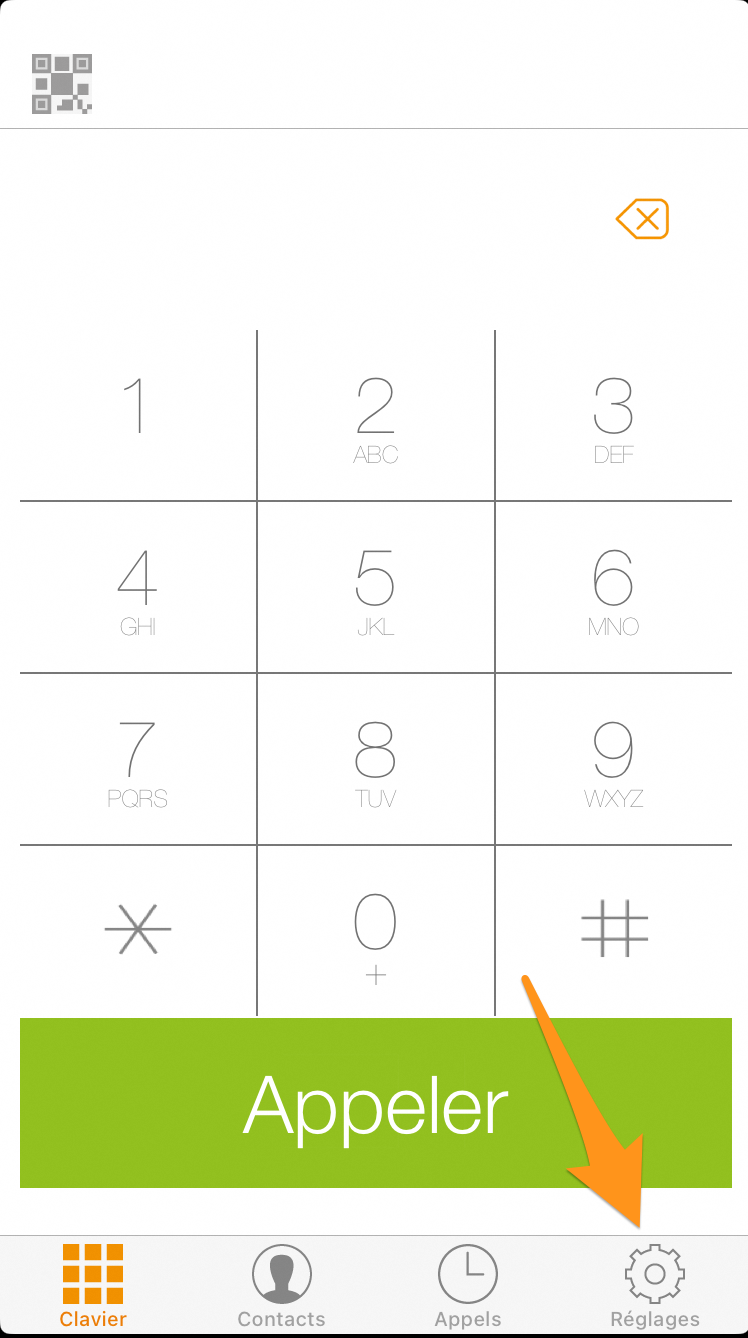 Une fois Zoiper Lite installé, sélectionnez Réglages en bas à droite.