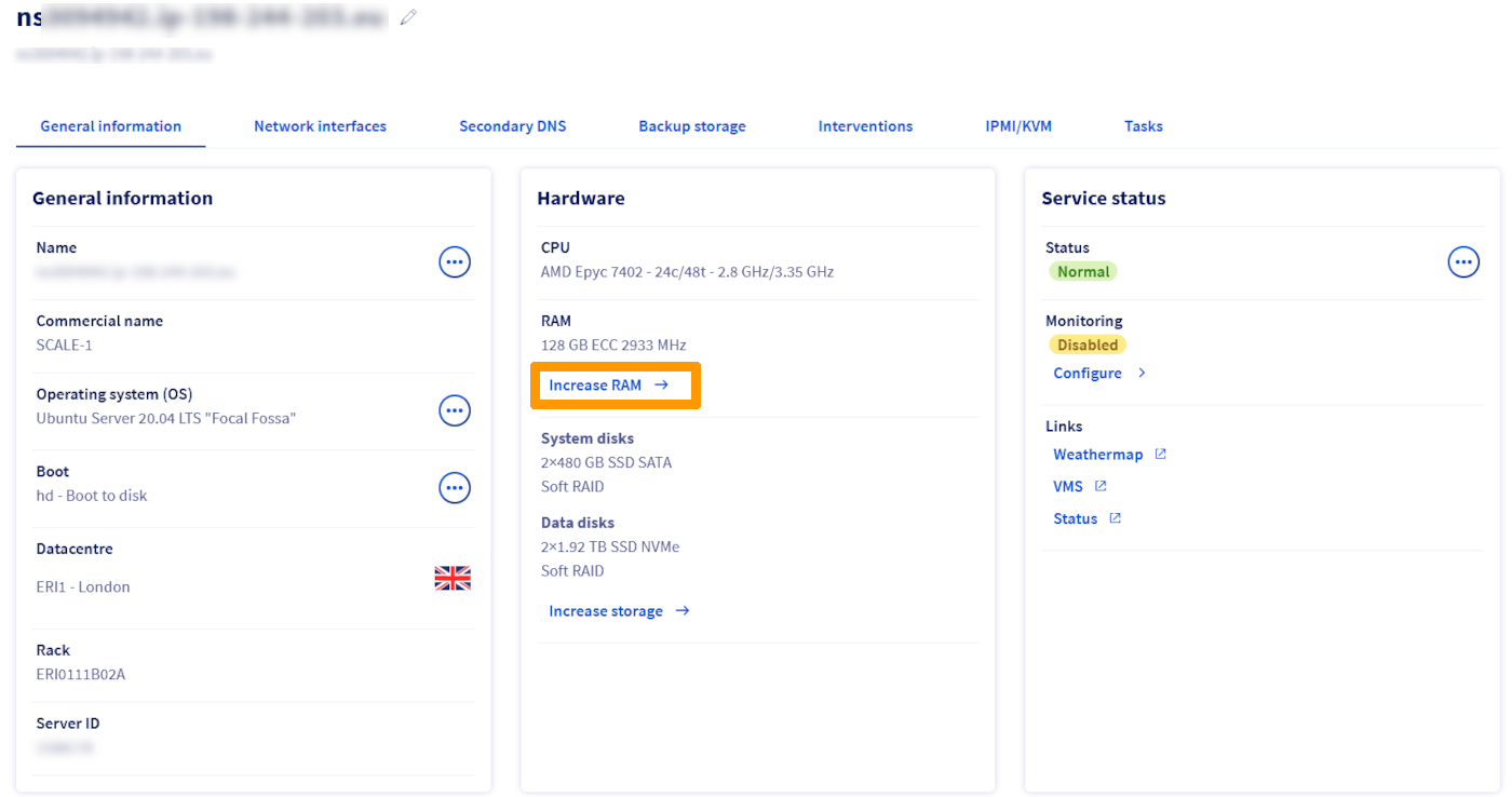 Navigation path:Bare Metal Cloud > Dedicated servers > Select your server