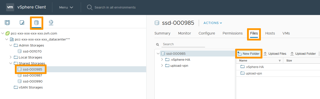 To go further with uploads within your Hosted Private Cloud - VMware on OVHcloud environment, please refer to the guide Uploading an ISO into a datastore.