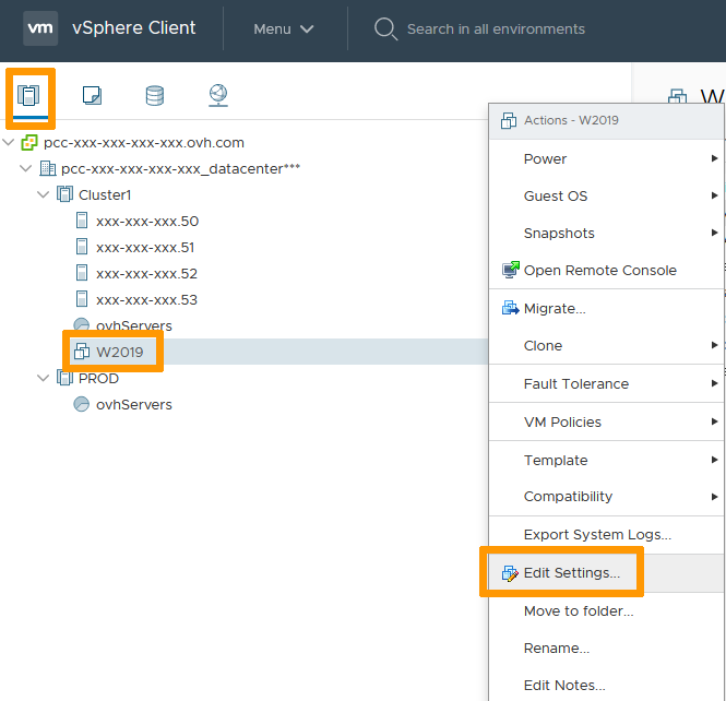 You can use your vCenter on OVHcloud secure HTML web client, as well as govc (see the procedure in the guide).