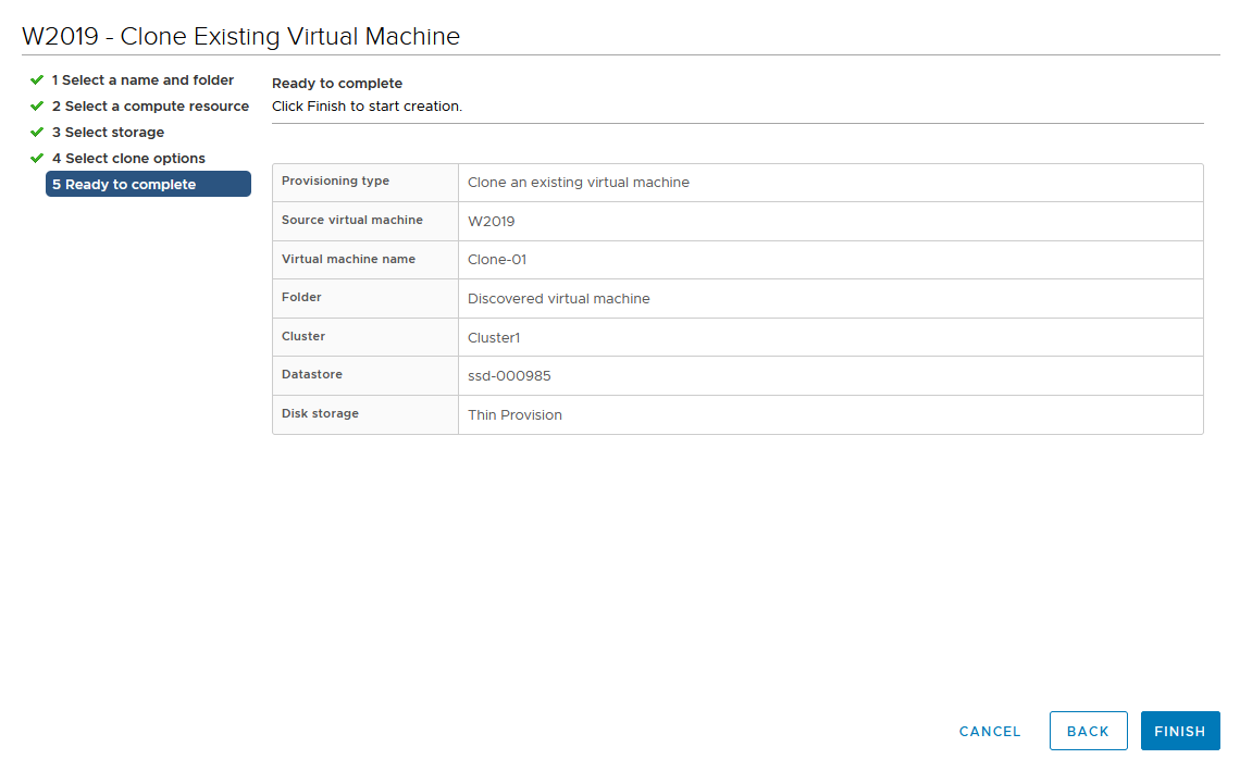 The cloning process will go through and the new VM is ready for you.