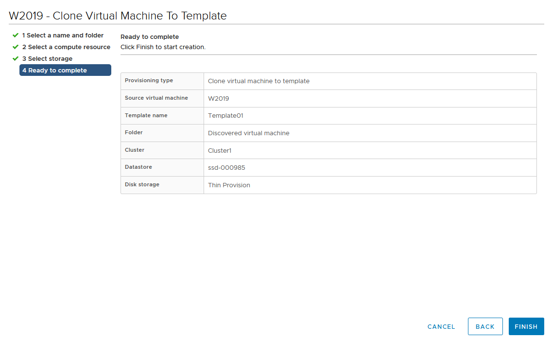 Name the template VM and select its datacenter location.