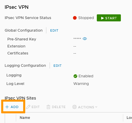 In the IPsec VPN Sites section, click + Add.