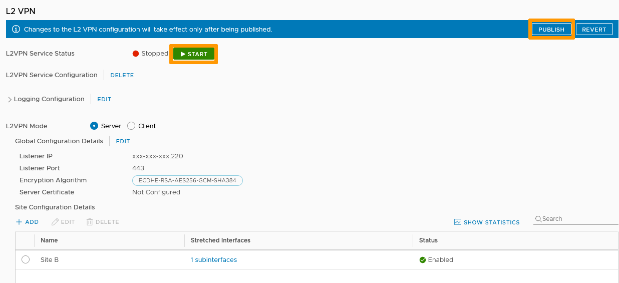 You can now Start the L2 VPN service and Publish all the changes made.