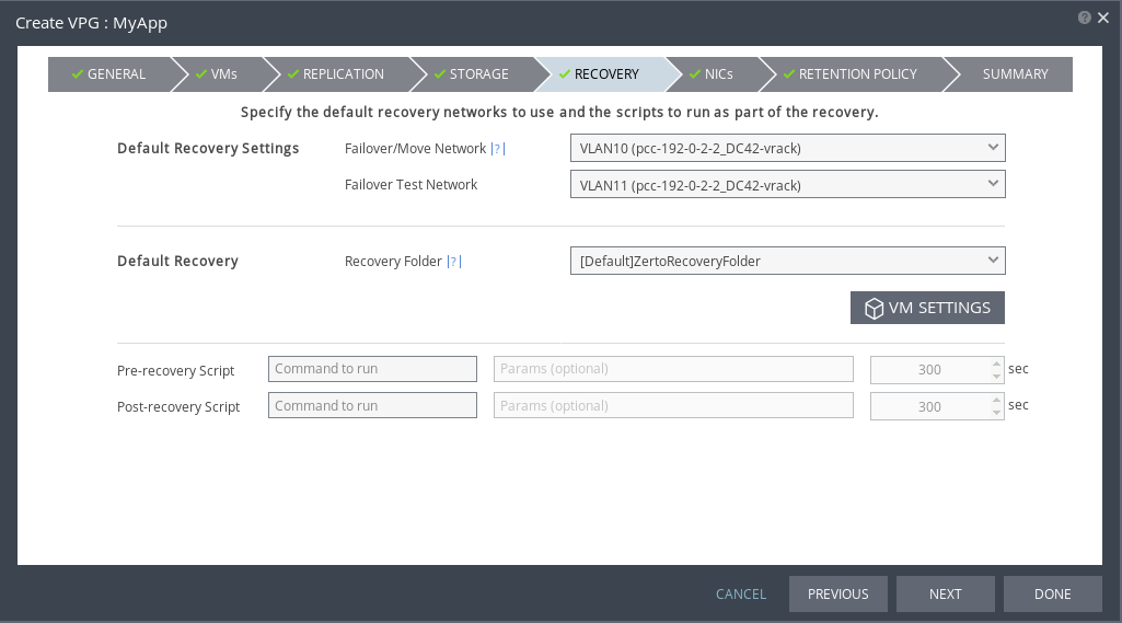 The last screen summarizes the settings for the new VPG. If everything is OK, click DONE.