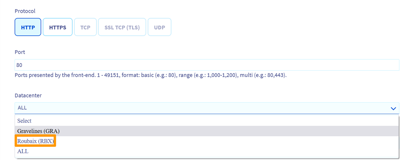 In the Datacenter field, choose the zone you wish to associate with your frontend.