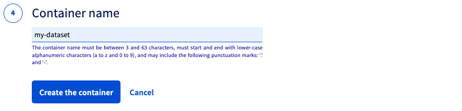 If you choose an S3* compatible Object Storage solution, please note that they are not yet compatible with our AI products from the Control Panel (UI). To use S3 compatible buckets, you will need to use ovhai. The Control Panel allows you to use Swift containers only.