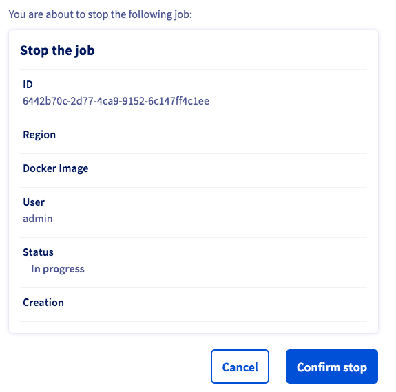 Once your job is In progress, in the job description panel, you should see the Access link. Click on it and you will be redirected on your job URL.