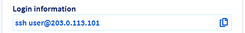 You can access your instance immediately after creation through the command line interface of your local device (Terminal, Command prompt, Powershell, etc.) via SSH.