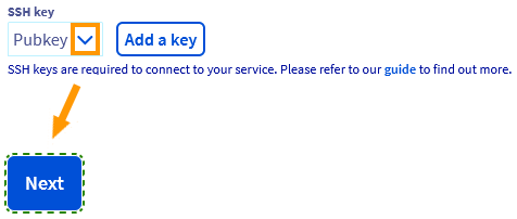 To add a key that is already stored in the OVHcloud Control Panel (see Step 2), select it from the list.