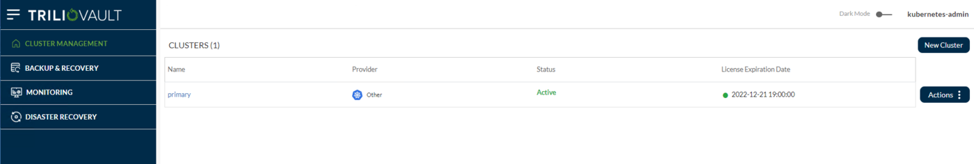 Another important thing to consider and remember is that a TVK License is application scope specific. In other words, you need to generate one type of license for either a Namespaced or a Cluster type installation.