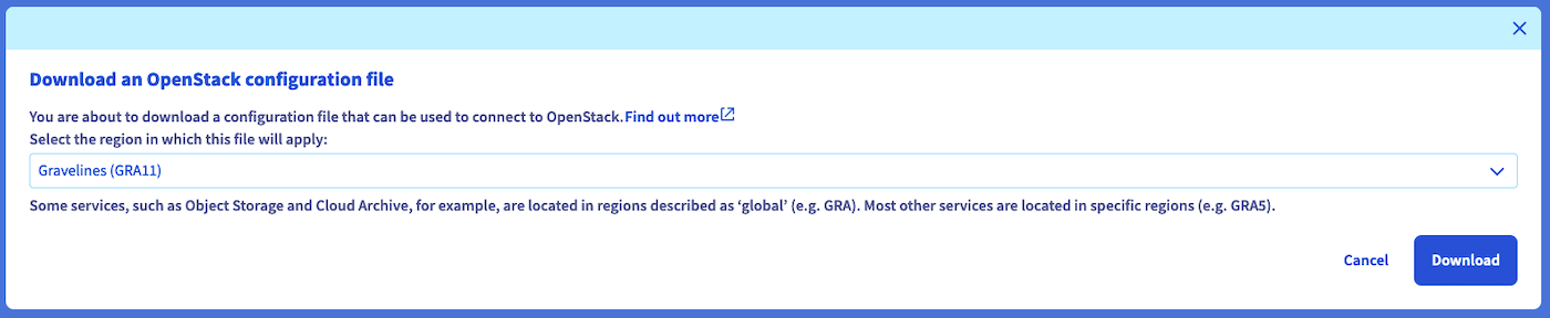 Download OpenStack configuration file