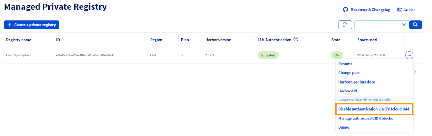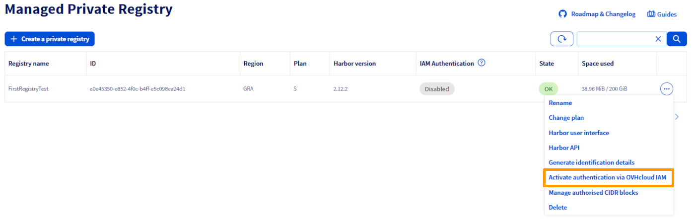 When you enable OVHcloud IAM authentication on your Managed Private Registry: