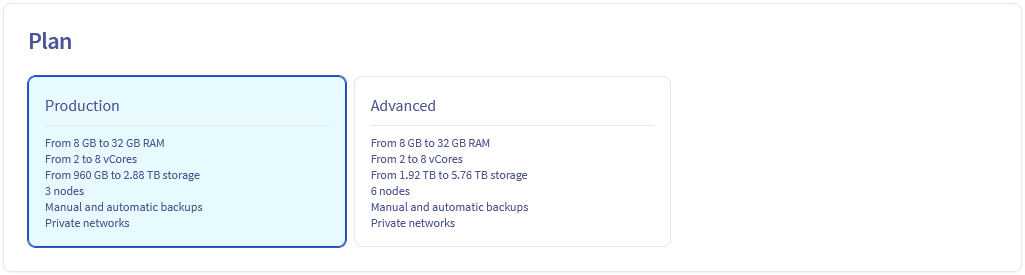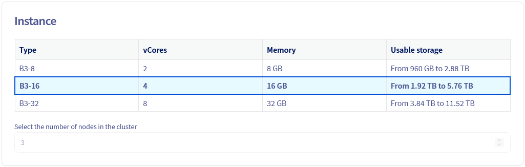 Choose the instance type for the nodes of your service, you will be able to change it afterward. The number of nodes depends on the plan previously chosen.
