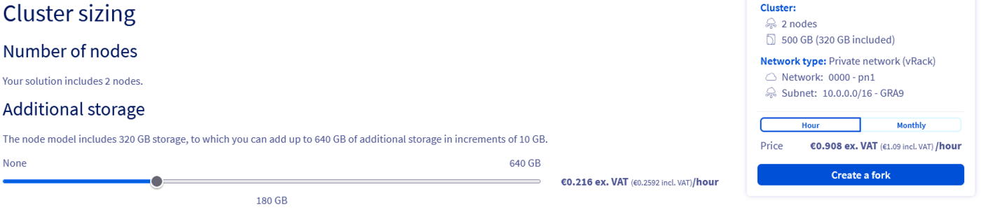 Additional storage can be ordered while forking the service.