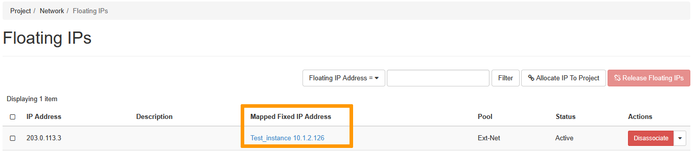Once done, the Floating IP will be detached from the instance and returned to the pool of Floating IPs.
