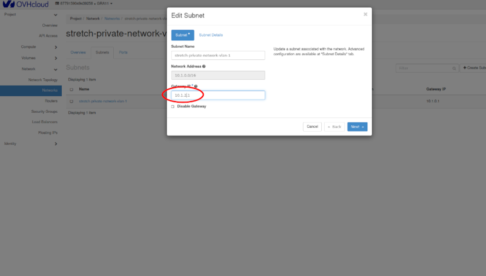 Go back to the OVHcloud Control Panel and refresh the network page.