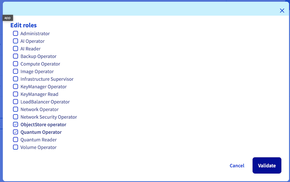 To grant access to OVHcloud Quantum Notebooks, assign users the Quantum Operator or Quantum Reader role.