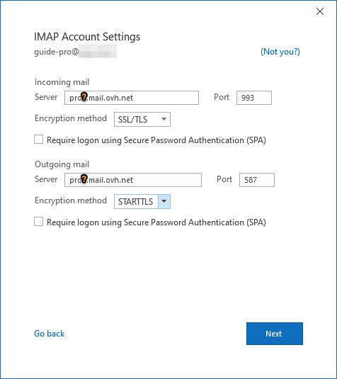 In this guide, we will use as the server name: "pro?.mail.ovh.net". You will need to replace the "?" with the actual number indicating the appropriate server for your Email Pro service.