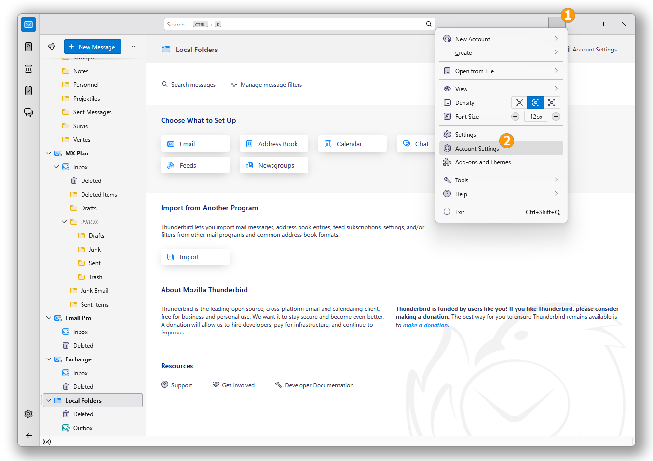 If you need to perform an operation that could result in the loss of your email account data, we recommend making a backup of the affected email account beforehand. To do this, refer to the "Export" section in the "Thunderbird" part of our guide "Manually Migrate Your Email Address".