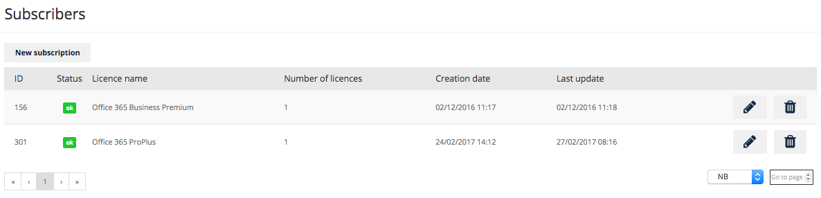 By managing your subscriptions, you can increase or cancel licences associated with your subscription group. A table allows you to view the details: