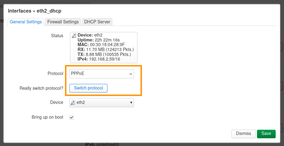 Sélectionnez l'interface à modifier, dans notre exemple eth2_dhcp.