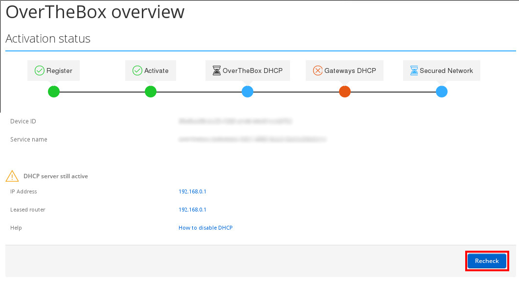 Revenez sur http://overthebox.ovh (192.168.100.1) et cliquez sur recheck.