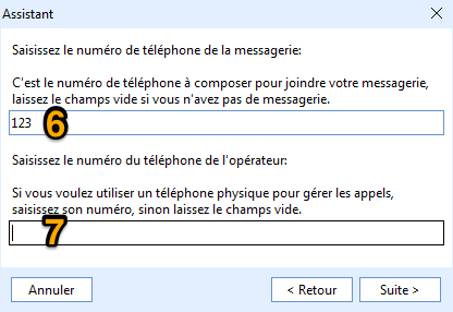 Laissez le champ numéro de téléphone de l'opérateur (7) vide.